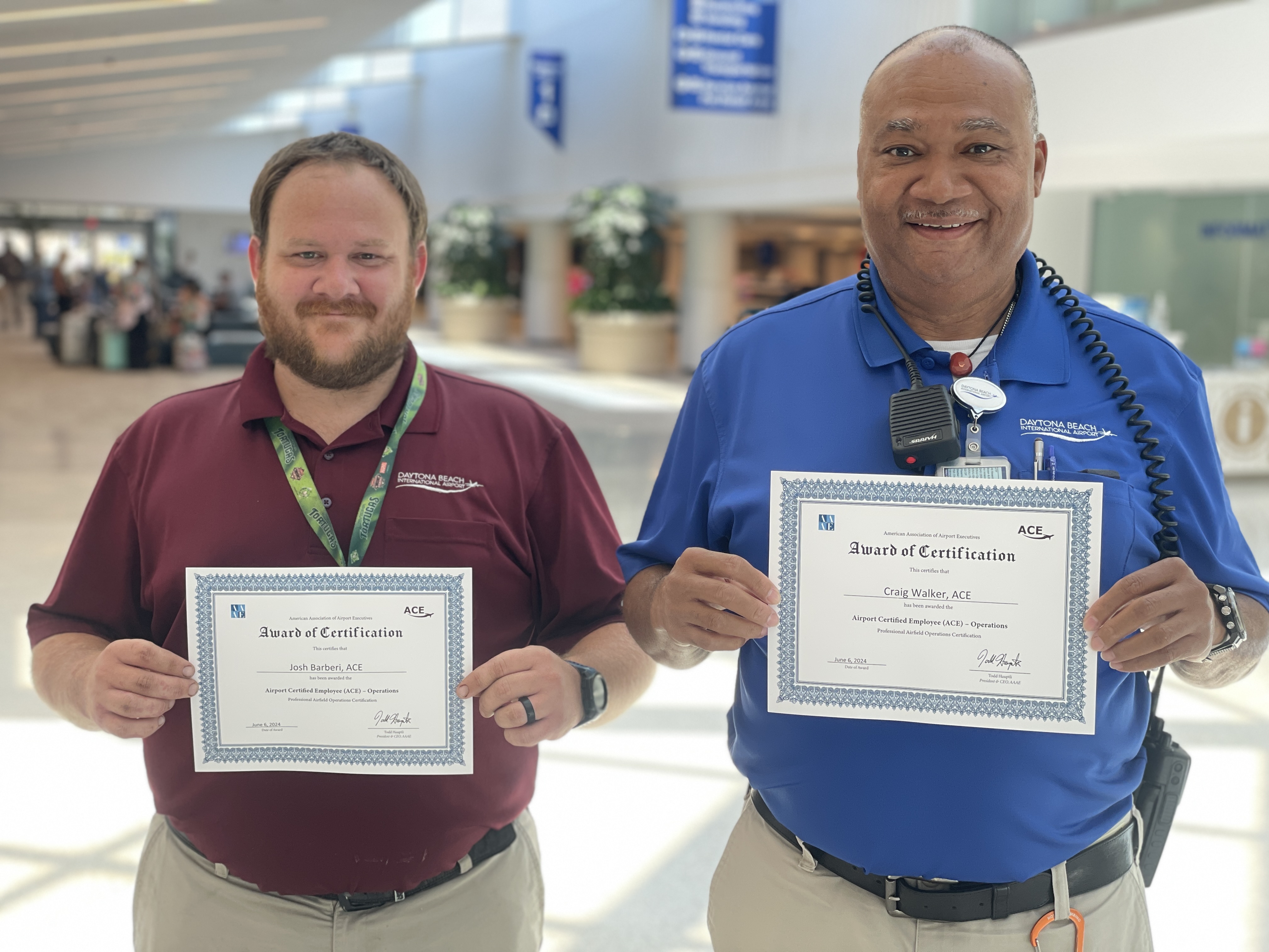 Craig Walker, A.C.E., is the Airport Training Coordinator and has been at DAB since 2014; Josh Barberi, A.C.E., is an Operations Agent and has been at the airport since 2016. In all, the airport has five employees who have A.C.E. designation.