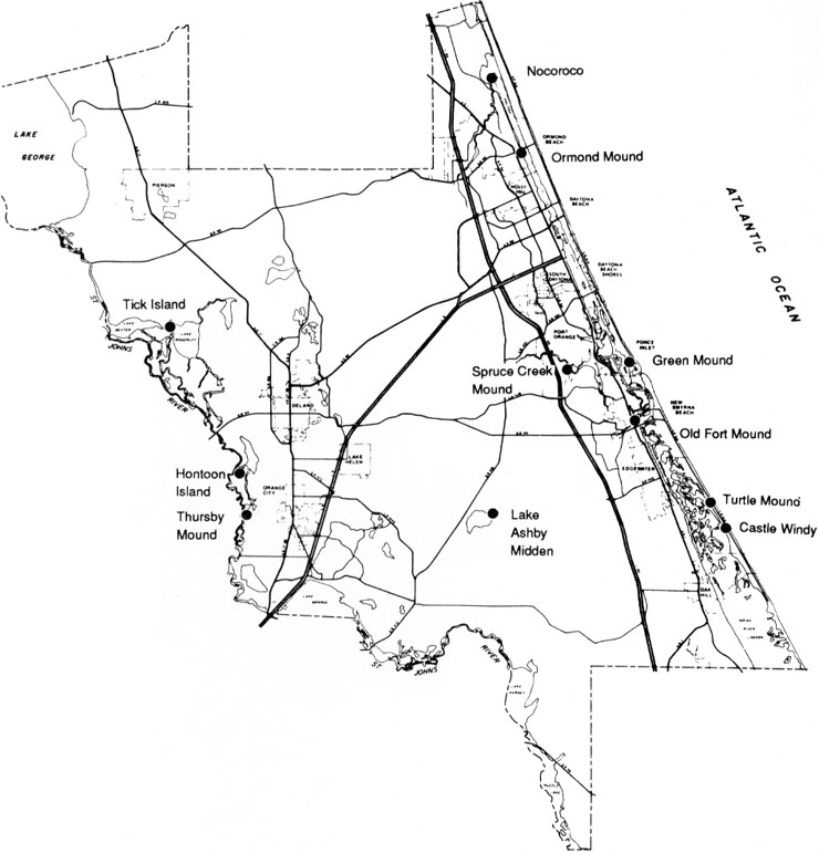 (The travel directions and text are adapted from True Natives: The Prehistory of Volusia County, by Dana Ste. Claire [Daytona Beach, Florida: The Museum of Arts and Sciences, 1992].
