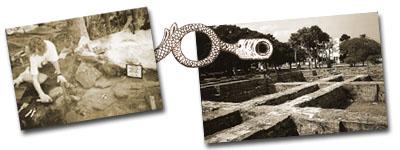 Perhaps the most well-known, and certainly the most visible, material remains associated with the New Smyrna colony are the coquina foundations at Old Fort Park in downtown New Smyrna Beach. The function of the foundations remains a mystery. An early account, written in 1776 - about a year prior to the colony's demise - states that construction of a "very large stone building" had begun at New Smyrna for "a mansion house." During the 1930s, the ruins were "restored" by Works Progress Administration workers. Believing that the thick coquina walls represented a fort, the restorers added bastions, but there is no historical or archaeological evidence for such a reconstruction. Some archaeologists and historians have recently suggested that the foundations originally supported a church or perhaps a large storehouse. Archaeological excavations suggest that the latter interpretation is most likely. The depth of the footers, the massiveness of the coquina walls, and the thickness of tabby floors found next to the structure imply a commercial or industrial use. In addition, the wear patterns on the floors indicate a great deal of foot traffic, such as might be expected in a commercial building.