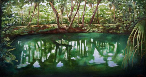 “Green Springs” is an oil on canvas painting of the beautiful spring near Lake Monroe. The piece shows the lush beauty of the natural sulfur spring, home to one of the county’s newest and most unique parks.