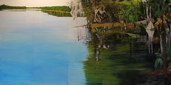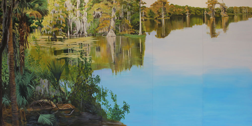 “I like to reflect on what the earth must have looked and felt like before the first human. After humans arrived, these giant, ancient trees served as caretakers providing direction as sentinels, shelter and transportation. Nature communicates an absence of time, a boundlessness of spirit. This inherent spirit of the natural world draws me to landscape.” – Molly Mabe