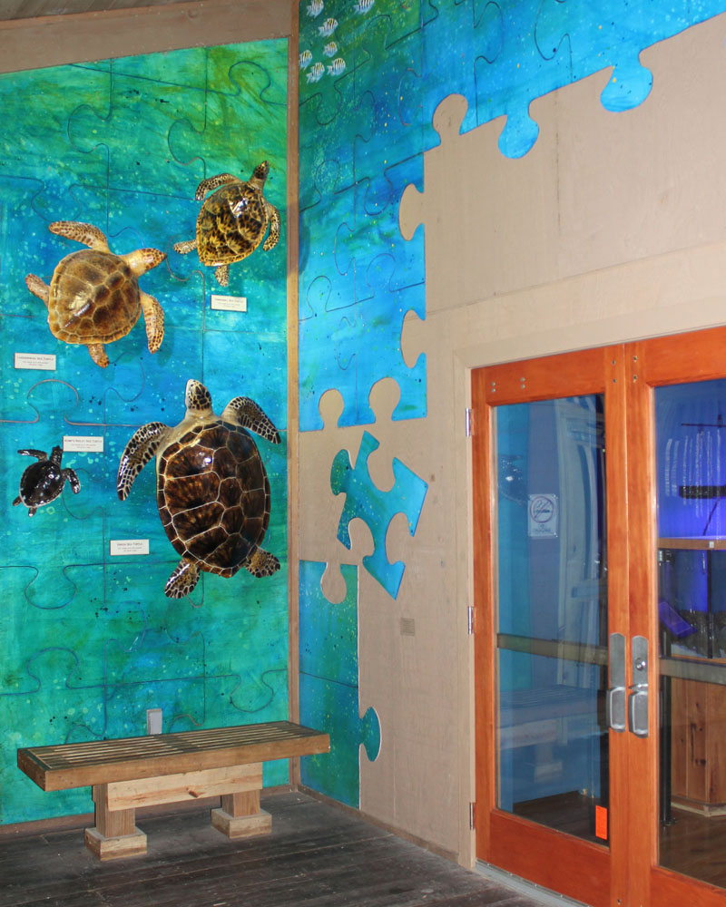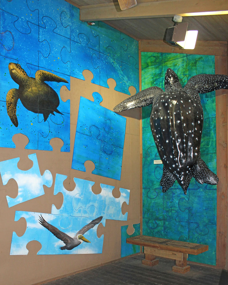 “Part of the Big Picture” consists of multiple pieces of acrylic on wood panel designed to resemble a jigsaw puzzle in progress. The puzzle includes images of marine life and Florida waterfowl. “My initial influences came from American Pop Art, particularly the appropriated and serially repeated images from popular culture. My process mixes several mediums, as well as stylistic conventions, even within a single work.” – John Wilton