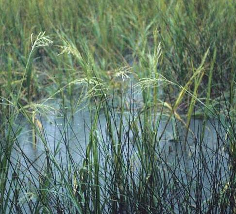 estuarine shorelines. They grow in the area where the water level fluctuates during high and low tides or the “intertidal zone." They can be distinguished because the needlerush is slightly darker than the cordgrass and needlerush has sharp points. Generally the cordgrass will grow farther out into the water while the needlerush grows more toward shore.