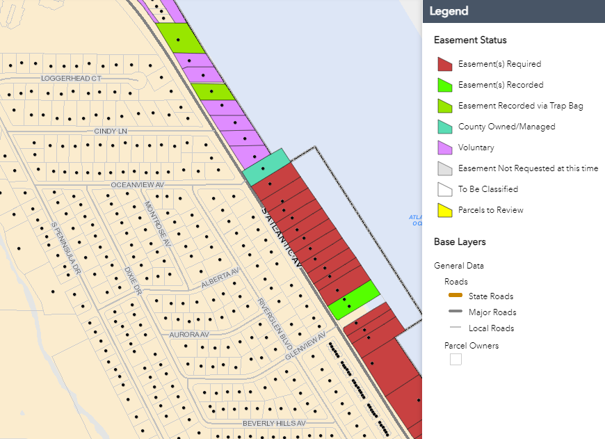 Property owners who live along the coastline with direct access to the beach are encouraged to click the project below that applies to their geographic location and learn more about the project and easement documents necessary for them to receive sand on the beach in front of their property. For additional information regarding the projects, please reach out to Paul Whiting, Coastal Project Coordinator, at 386-248-8072 x20354 or pwhiting@volusia.org. For questions regarding easements, please contact Keith Koshoil, Right of Way Specialist, at KKoshiol@volusia.org or 386-736-5967 x15848.