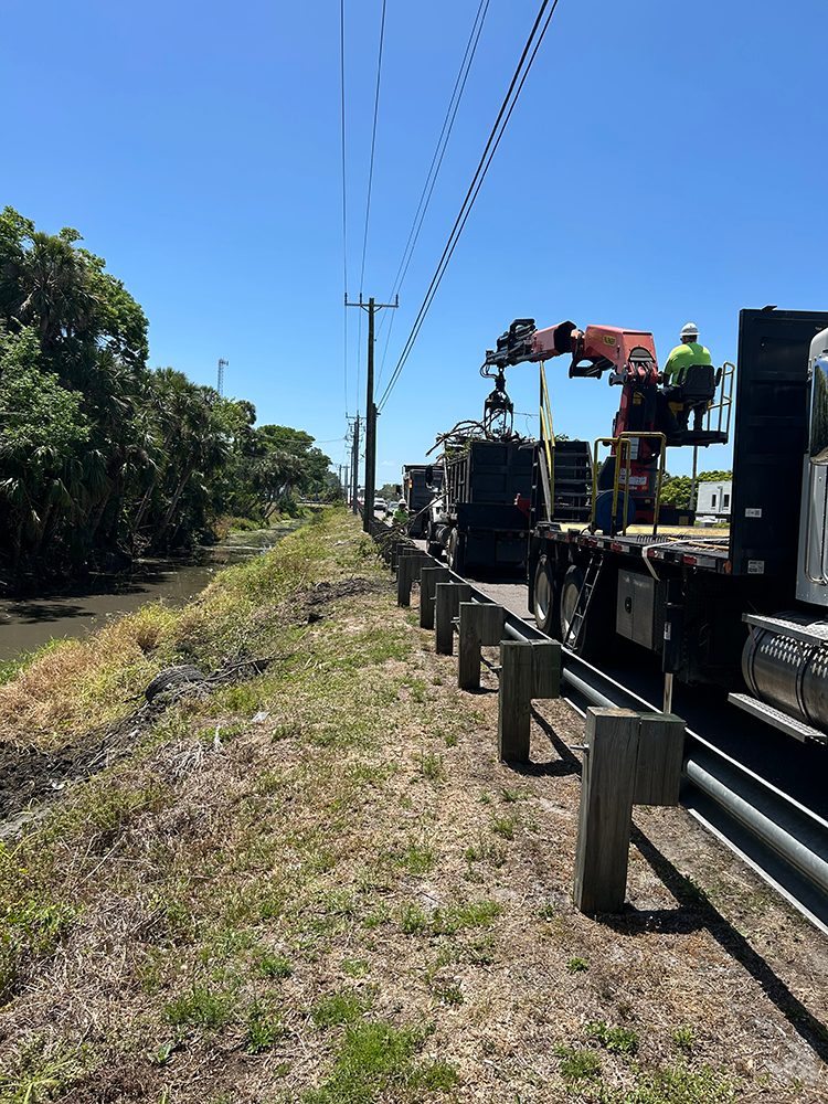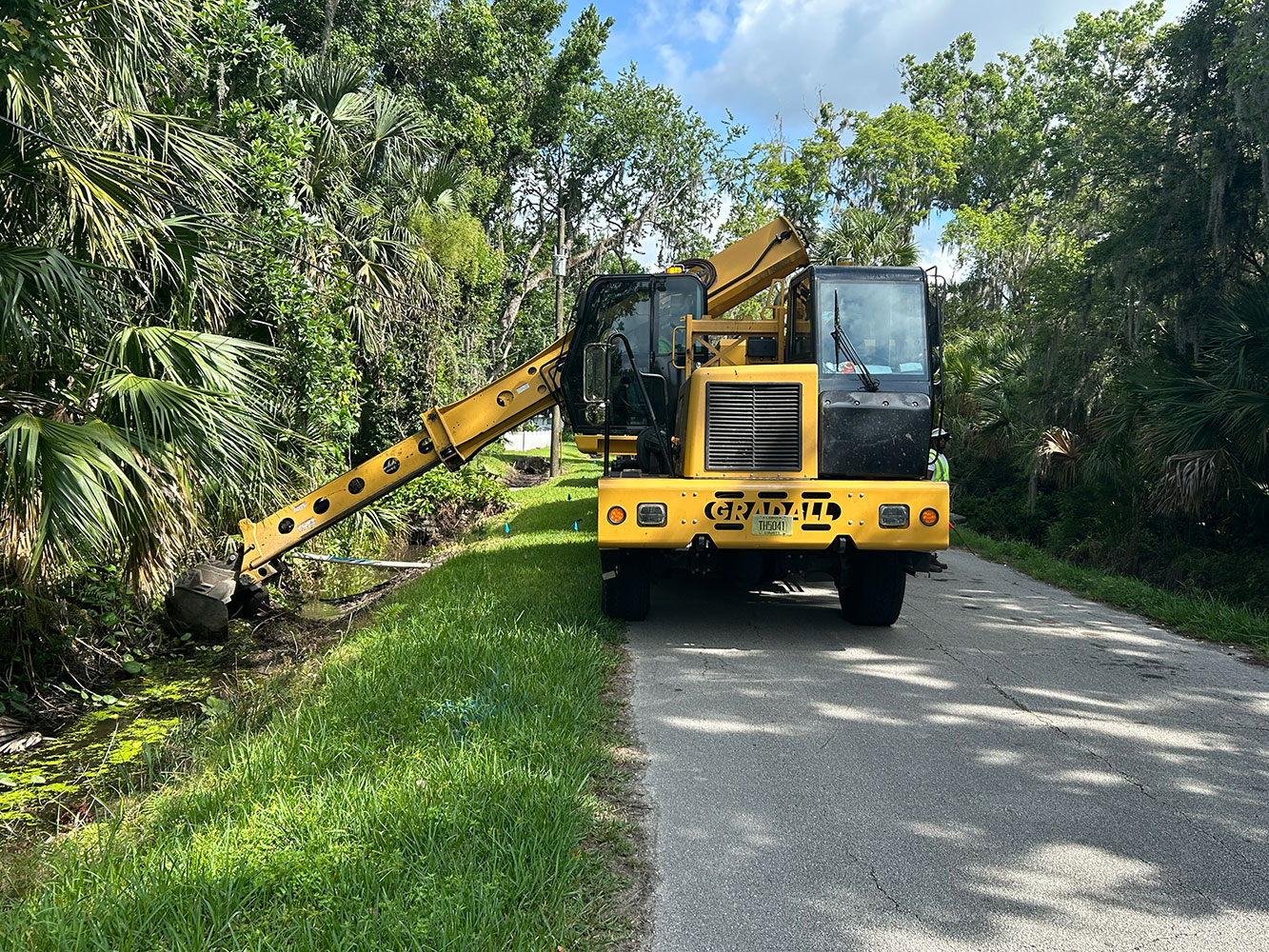 • August 8 - A canal maintenance crew is working on the G-09 open channel system in the Daytona Park Estates subdivision near DeLand. Crews are removing debris and cleaning the channel to restore its profile, eliminate obstructions, and maintain proper water flow. This routine maintenance helps reduce the risk of flooding and ensures the canal continues to function effectively. The project is expected to be completed within two weeks.