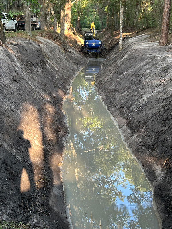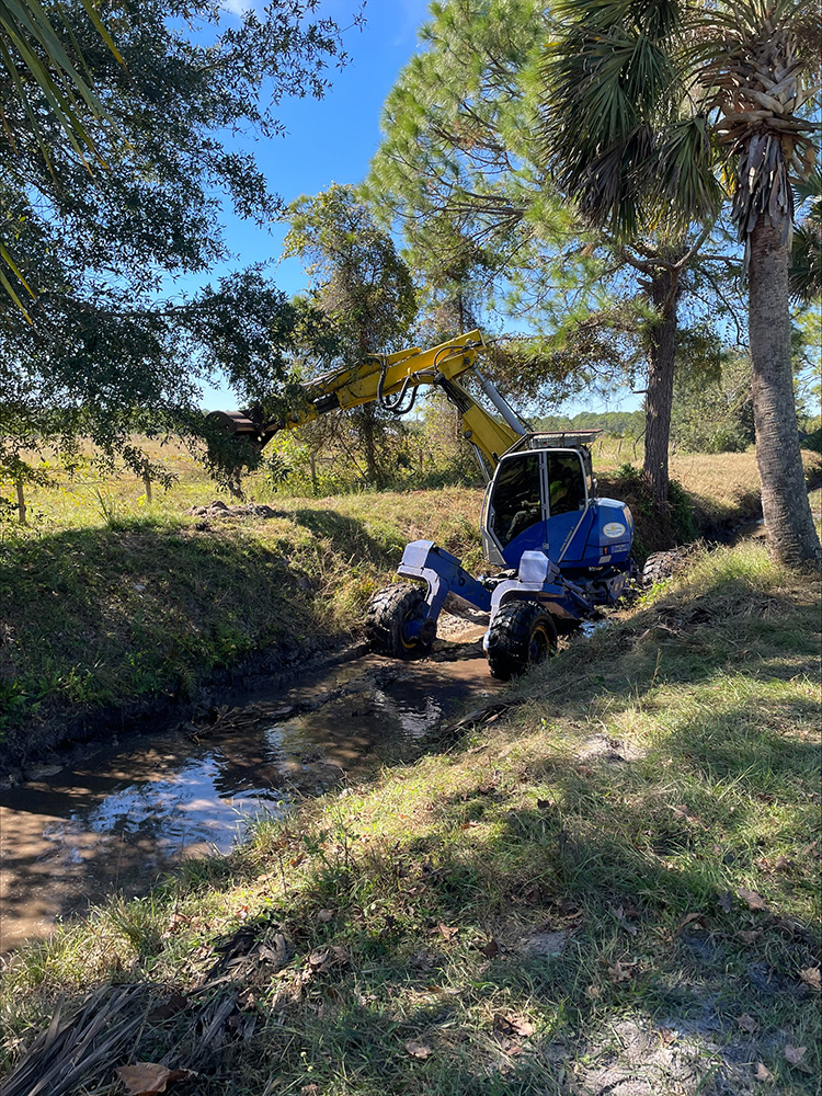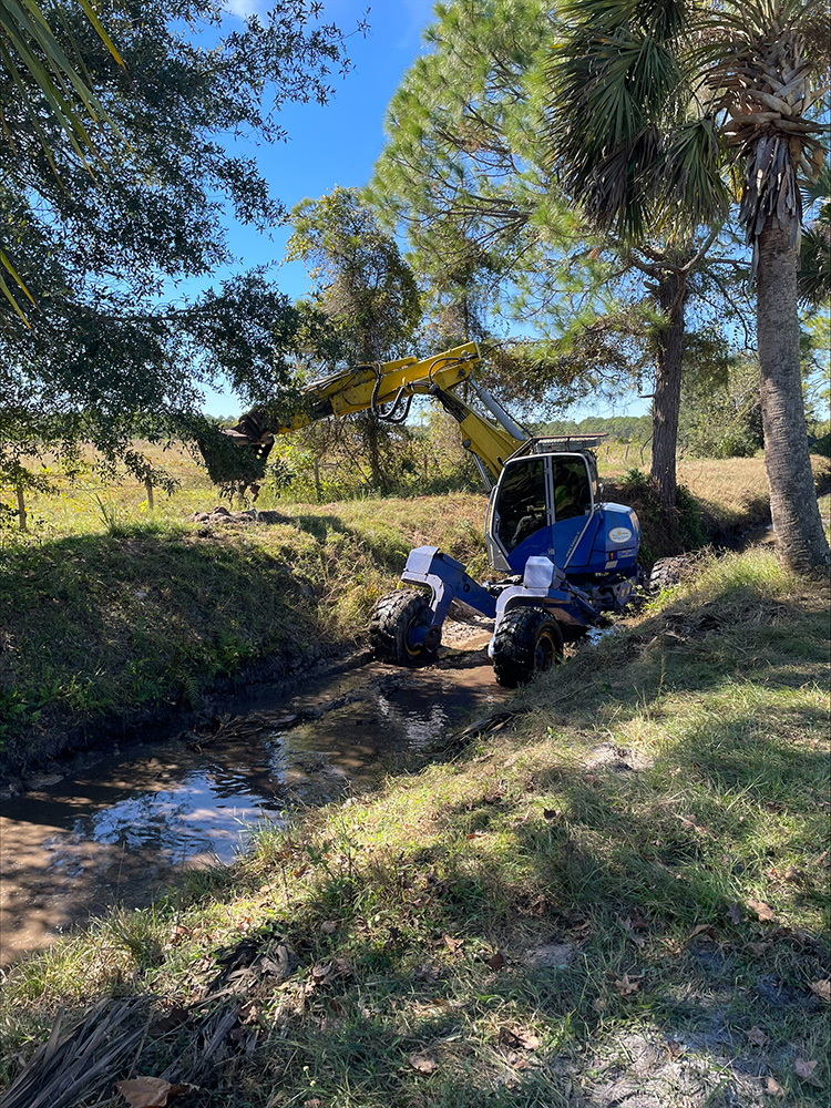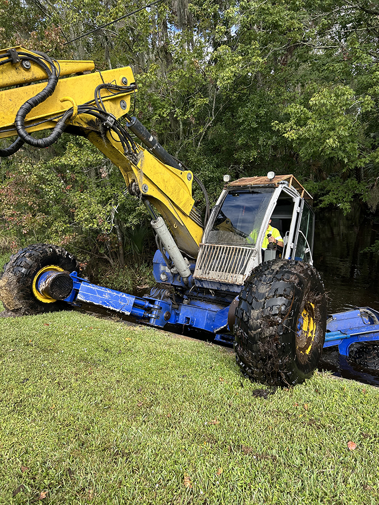 • November 14 - This week, a walking “spider” excavator was deployed to the Tomoka Farms Village area to mow and clean a section of a canal within the Quiet Place in the Country subdivision. Crews are slope-mowing the canal banks and then cleaning and reshaping the canal to improve flow, restore capacity, and remove obstructions. The work is expected to be completed by the end of next week.