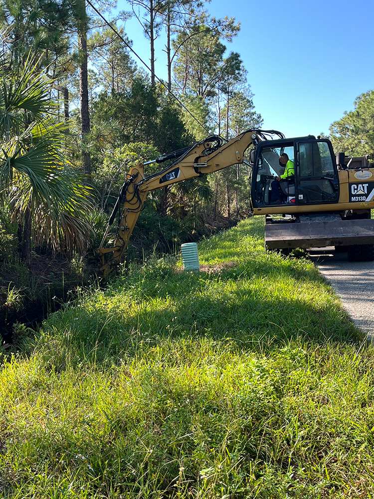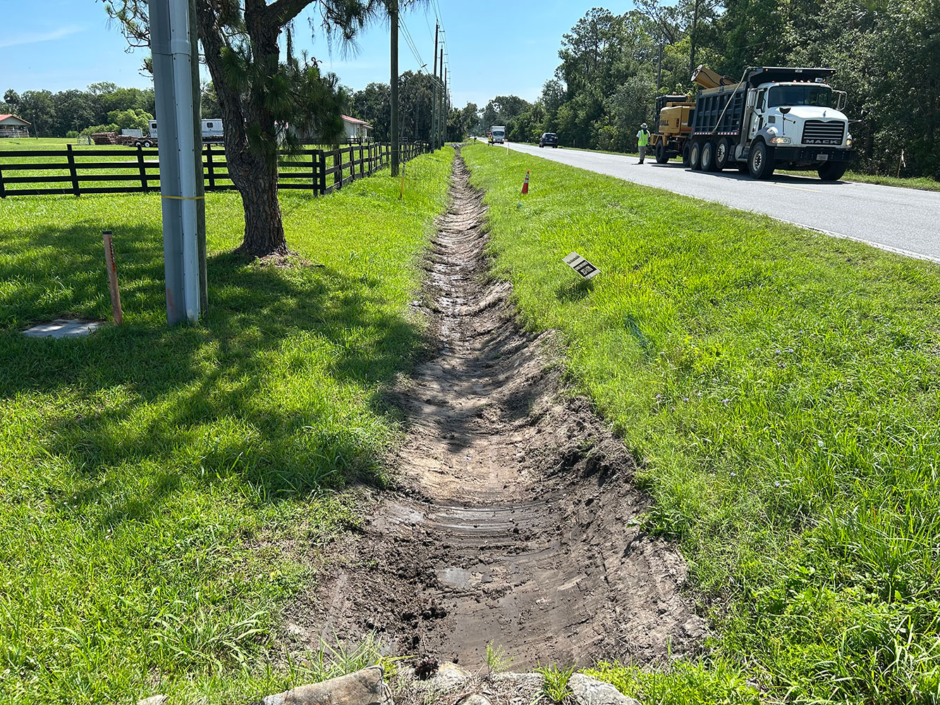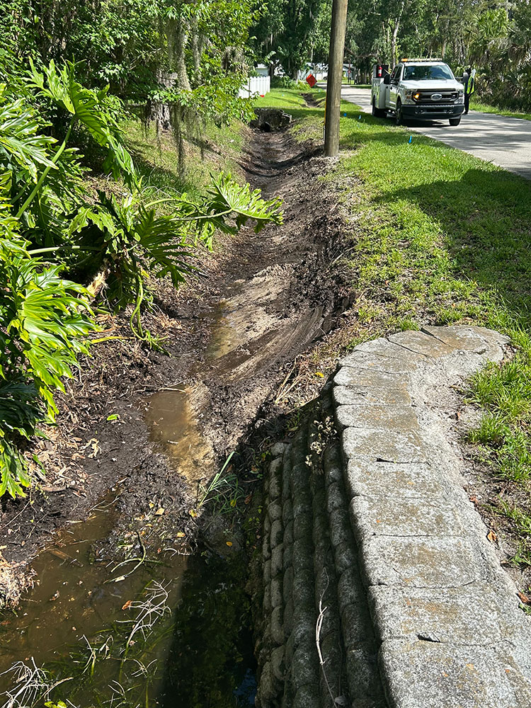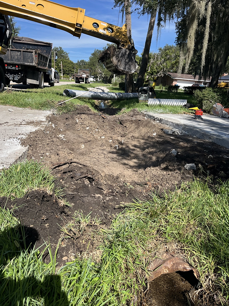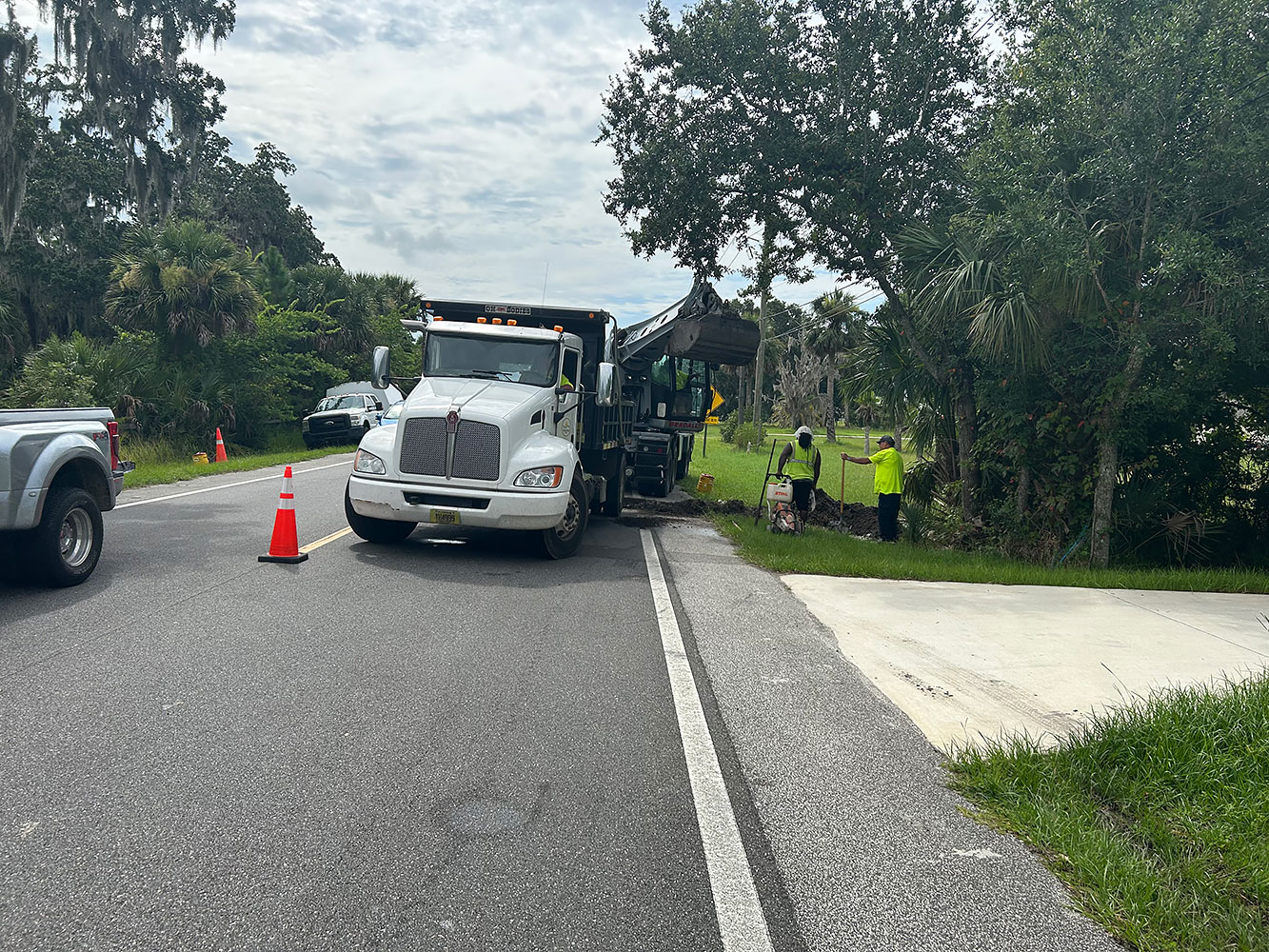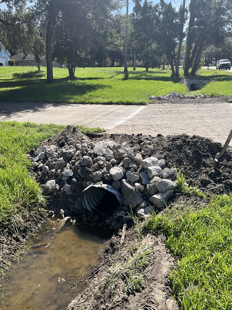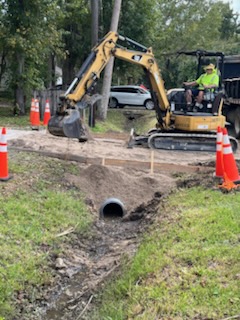 • August 13 - A drainage construction crew is replacing deteriorated driveway culvert pipes along North Shell Road in DeLand. The new pipes will improve drainage flow, allowing stormwater to move more efficiently through the roadside swales. This work will help reduce standing water, minimize flooding risks, and prevent stormwater runoff from accumulating on the roadway.
