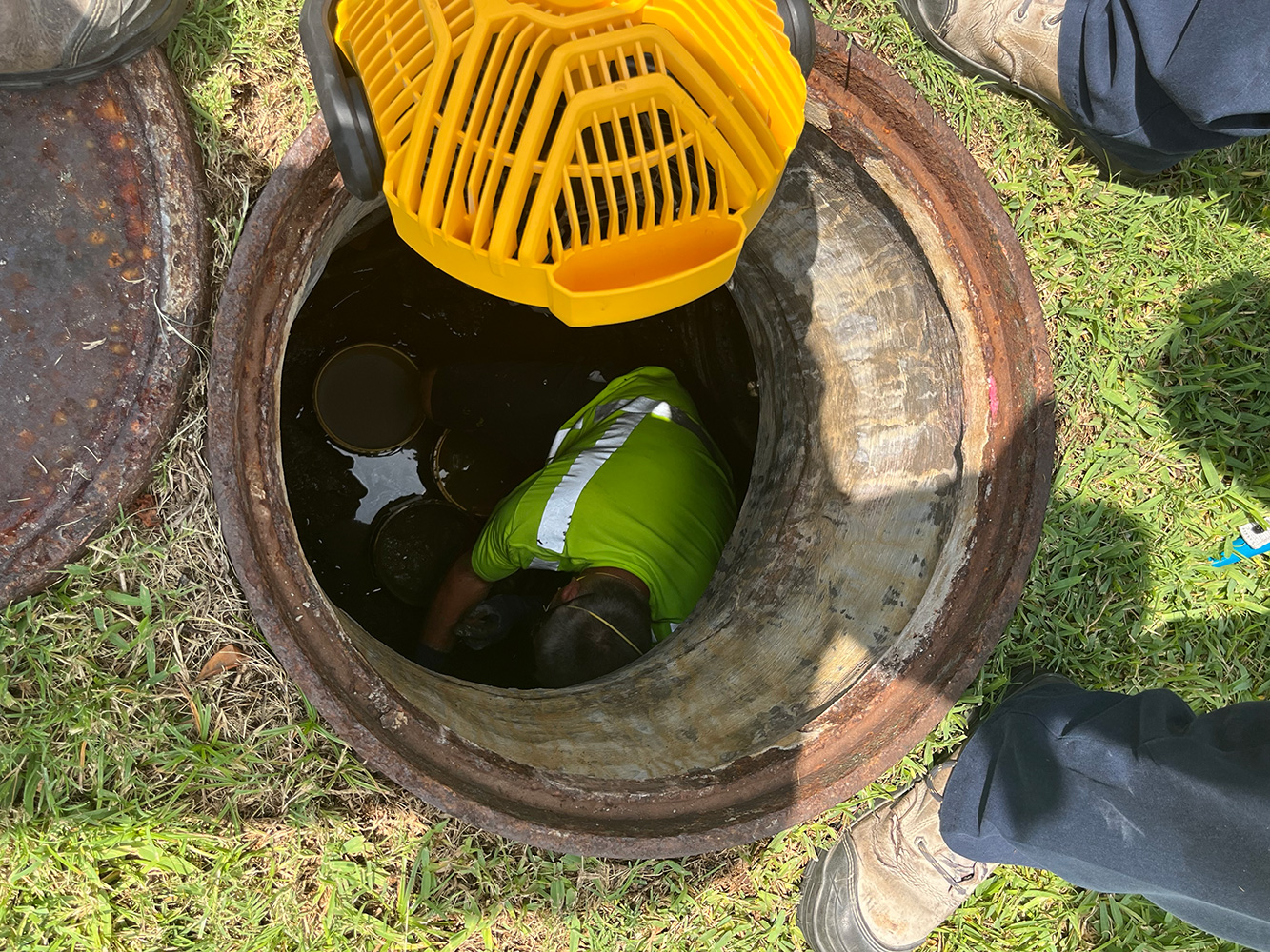 • August 22 - This week, the West Side Stormwater Structures Maintenance Crew used a Vac truck to complete quarterly cleaning and inspection of nutrient-reducing baffle boxes. Baffle boxes are underground stormwater treatment systems that slow down runoff and capture trash, debris, and nutrients such as nitrogen and phosphorus before they reach local waterways. Regular maintenance reduces the risk of street flooding and overflows while also protecting water quality in rivers and streams.
