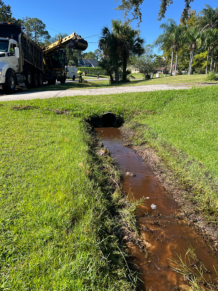 • December 12 - This week, crews replaced an aging pipe culvert along Avocado Drive at Old Daytona Road in the Port Orange area. The original pipe had reached the end of its service life, and the new installation will improve stormwater flow through the adjacent roadside ditches, helping the area better manage heavy rainfall.